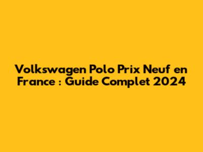 Volkswagen Polo Prix Neuf En France : Guide Complet 2024