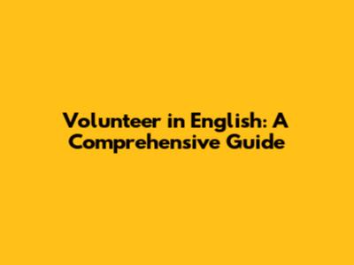 Volunteer In English: A Comprehensive Guide