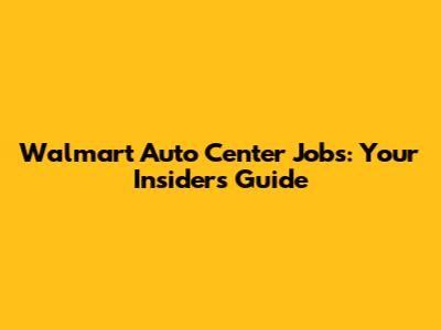 Walmart Auto Center Jobs: Your Insider's Guide