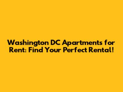 Washington DC Apartments: Find Your Perfect Rental!
