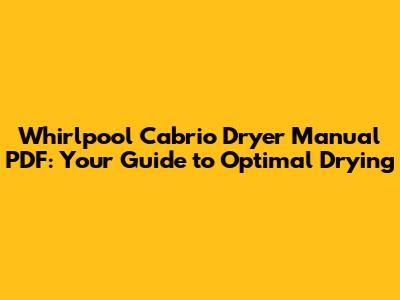 Whirlpool Cabrio Dryer Manual: Find Your PDF Guide