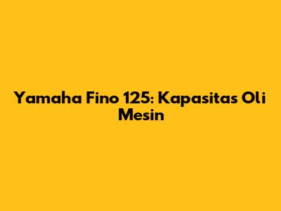 Yamaha Fino 125: Kapasitas Oli Mesin