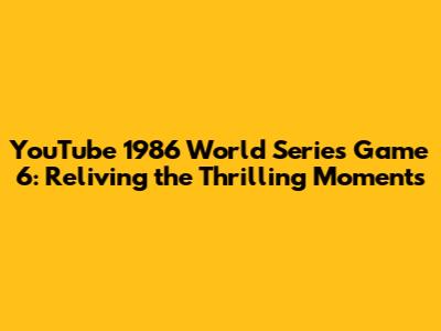 YouTube 1986 World Series Game 6: Reliving The Thrilling Moments