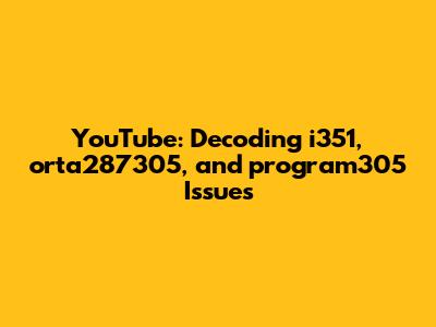 YouTube: Troubleshooting I351, Orta287305, And Program305