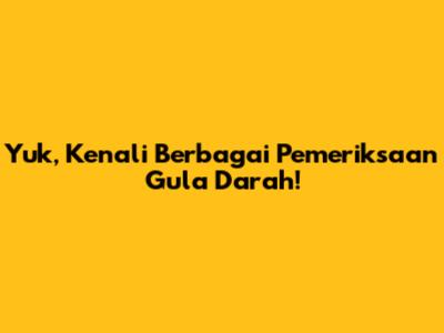 Yuk, Kenali Berbagai Pemeriksaan Gula Darah!