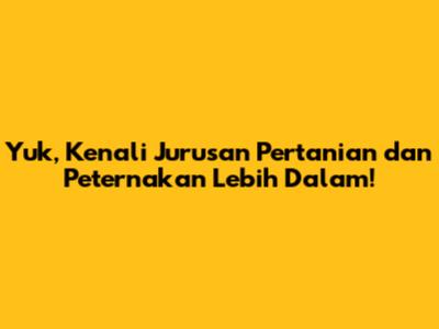 Jurusan pertanian dan peternakan adalah pilihan yang tepat bagi kalian yang ingin berkontribusi dalam menyediakan pangan bagi masyarakat dan mengembangkan sektor pertanian dan peternakan di Indonesia. Dengan pengetahuan dan keterampilan yang tepat, kalian bisa meraih karir yang sukses dan memberikan dampak positif bagi lingkungan dan masyarakat. So, tunggu apa lagi? Segera gali potensi kalian di bidang ini dan raih impian kalian!