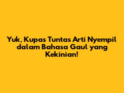 Nyempil artinya dalam bahasa gaul adalah sebuah istilah yang sedang naik daun banget, nih, guys! Kalian pasti sering denger kata ini berseliweran di media sosial, obrolan sehari-hari, atau bahkan di lagu-lagu kekinian. Tapi, sebenarnya apa sih arti nyempil itu? Nah, di artikel ini, kita bakal kupas tuntas segala hal tentang nyempil adalah sesuatu yang perlu kalian tahu. Mulai dari definisi, penggunaan dalam berbagai konteks, hingga contoh-contohnya yang bikin kalian makin paham.