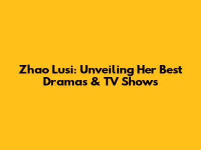 Zhao Lusi: Unveiling Her Best Dramas & TV Shows