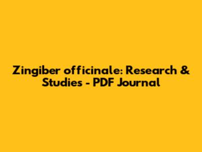 Zingiber Officinale: Research & Studies - PDF Journal
