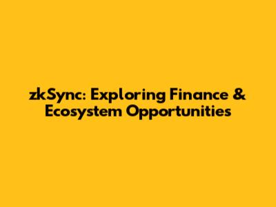 ZkSync: Exploring Finance & Ecosystem Opportunities